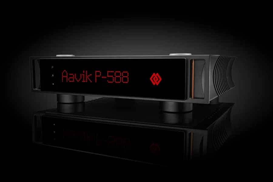 Key components in the system include the Aavik I-588 integrated amplifier, SD-588 streaming DAC, and P-588 power amplifier, alongside Børresen C3 loudspeakers and BM3 bass modules, supported by Ansuz cabling and resonance control accessories.
